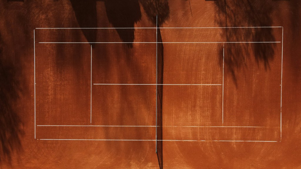 Vor dem Spielen den Tennisplatz von Unrat befreien.