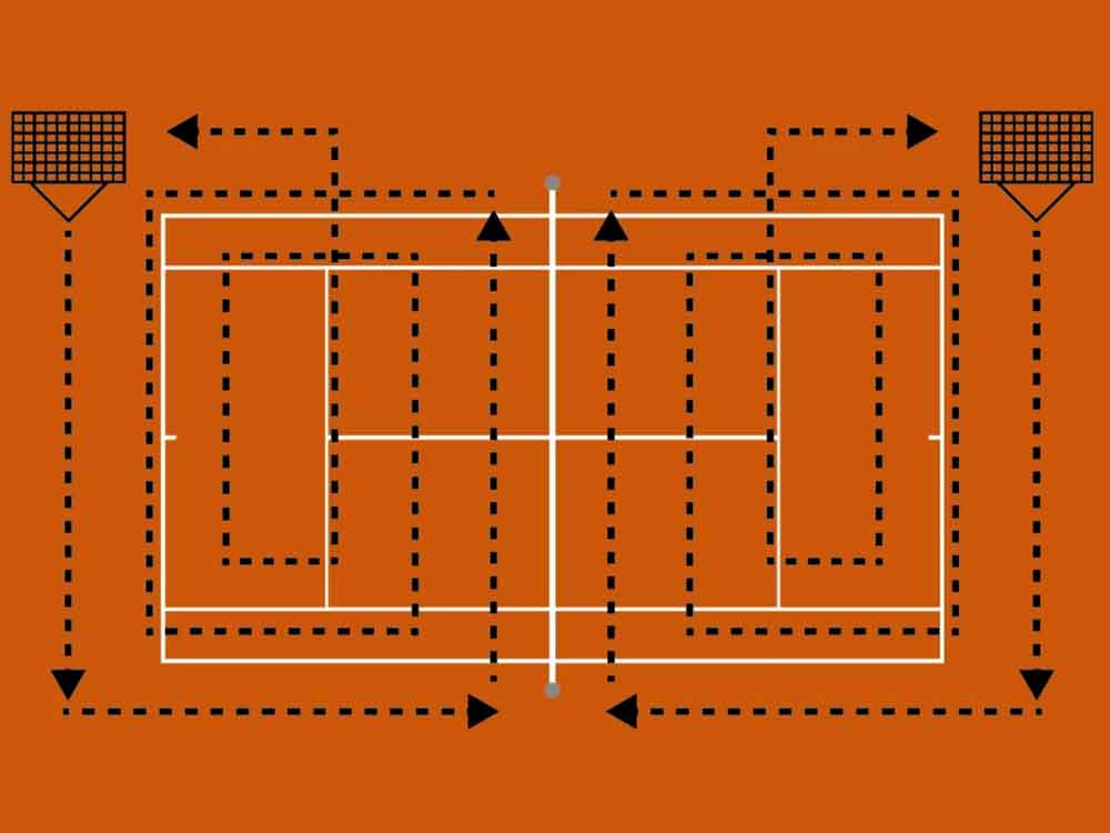Den Tennisplatz nach dem Spielen komplett (bis zum Zaun) abziehen.